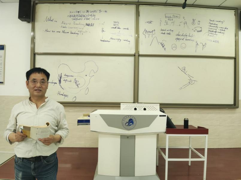 任军利老师围绕“什么是微格教学”和“怎样上好微格教学”两个方面给学生做了生动详实的培训讲解。任老师以他37年一线教学研究和实践经验,深入浅出、幽默风趣的教学方式,运用简笔画和思维导图助力微格教学,给学生做了一场别开生面的讲座。同学们听讲座时聚精会神、兴致勃勃,学习到具体实用的授课技巧和思维导图式教学设计方法,讲座的开展为我院第十四届英语微格教学比赛的顺利进行和师范生教学能力的提升奠定了基础。