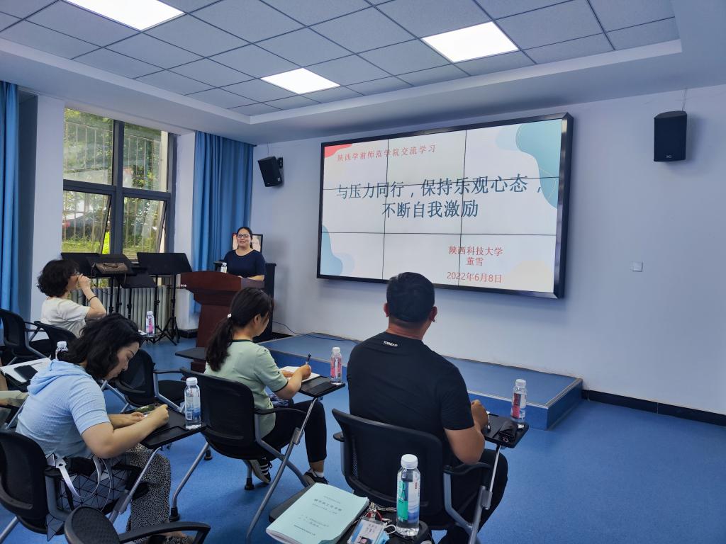 本次活动主要由两部分组成。首先特邀陕西科技大学心理健康教育中心董雪主任做“与压力同行,保持乐观心态,不断自我激励”专题报告。针对目前best365官网学工队伍人员短缺,辅导员工作任务重,心理压力大的现状,董雪主任通过分析产生压力的来源、压力的类型以及辅导员面对压力的疏导途径,结合现实案例做了详细讲解。其次,由西北大学心理健康教育中心寇老师带领参会人员做沉浸体验。寇老师带领大家做了“head up,head down”、“spaghetti”、“Dino说”、“空谷回声”四项小游戏,全体参会人员在轻松愉快的游戏中放松自我,释放压力,了解自己,走进自己。