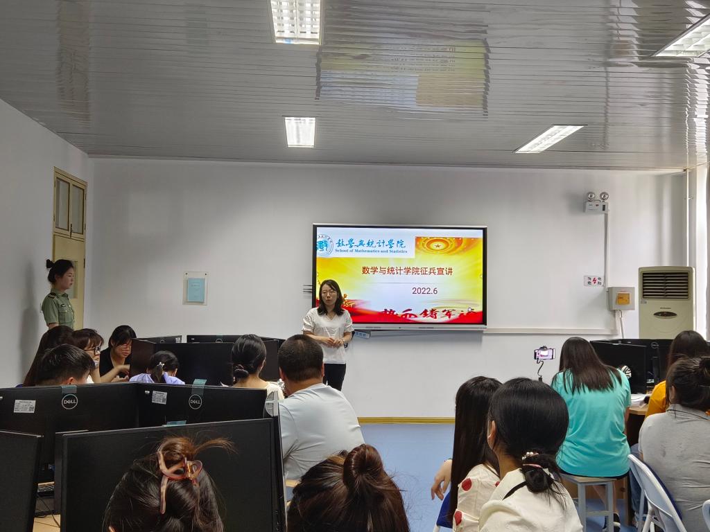 为进一步指导毕业生征兵宣传工作,提高学生应征入伍的热情。数学与统计学院于6月8日下午3点在积学楼A304教室开展大学生征兵宣讲活动,本次活动采用线上和线下两种方式相结合,由我院2019级数学教育毕业生、退役军人田艺伟同学主讲,2018级和2019级学生参加了活动。