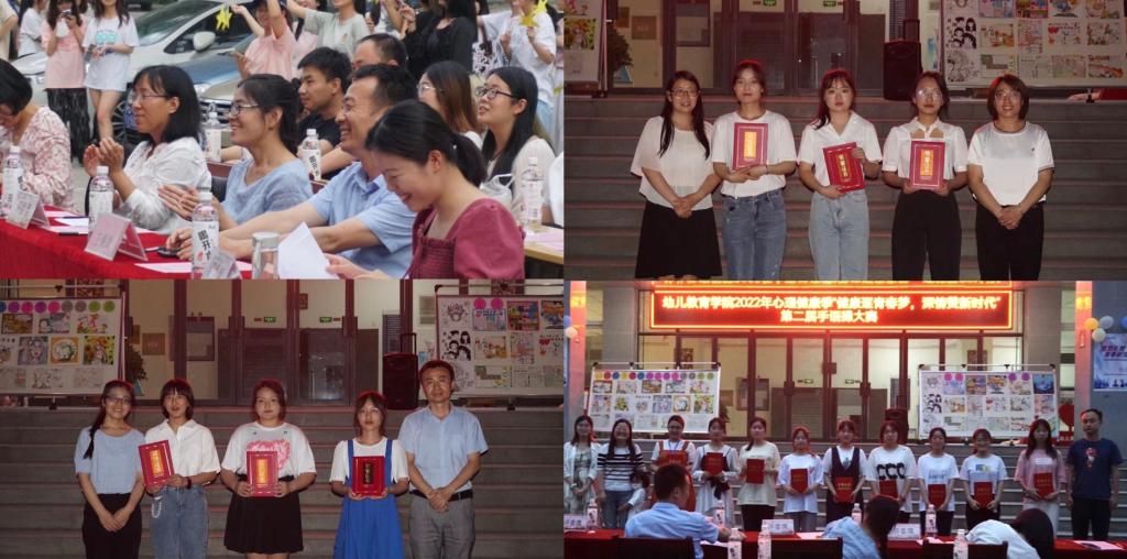 为进一步加强我院大学生心理健康水平,丰富大学生课余生活,引导学生关注心理健康,更好的展现大学生积极进取的精神面貌,在学生中倡导关爱身心健康,树立积极健康观,培养健康生活方式等理念,创建心理健康的良好氛围。2022年6月2日18:00,幼儿教育学院在启真楼前举办“健康逐青春梦,深情赞新时代——幼儿教育学院第二届手语操大赛”,幼儿教育学院2021级、2020级和2019级共13个班参加了比赛。出席本次大赛的评委有来自幼儿教育学院的学前心理与管理系主任唐海朋老师、张瑶老师、成倩老师、学前课程教学系老师焦惟老师、院党委副书记苏群老师;此外,出席本次大赛的还有幼儿教育学院党委书记(主持工作)王继康和幼儿教育学院全体辅导员。