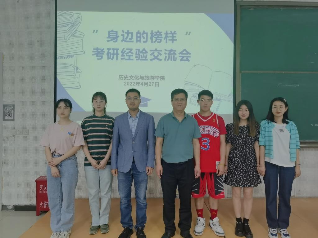 为大力宣传国家资助政策及育人成效,充分发挥优秀学子典型示范作用,引导我院学生增强树立勤奋学习、自强不息、奋勇拼搏的进取意识,有效推动我院学风建设工作,在学生中形成争先创优、奋发向上的浓厚学习氛围。历史文化与旅游学院于4月27日下午在2教B1举办了以“榜样的力量 青春的模样”为主题的考研经验交流会。此次交流会由学院学工办主任王黎老师主持,党委书记童广运老师、副院长黄彦震老师、2019级全体本科生参加。学院2021年考研成功的程思琪、杨军岩等五位同学为大家进行宣讲并分享考研经验。