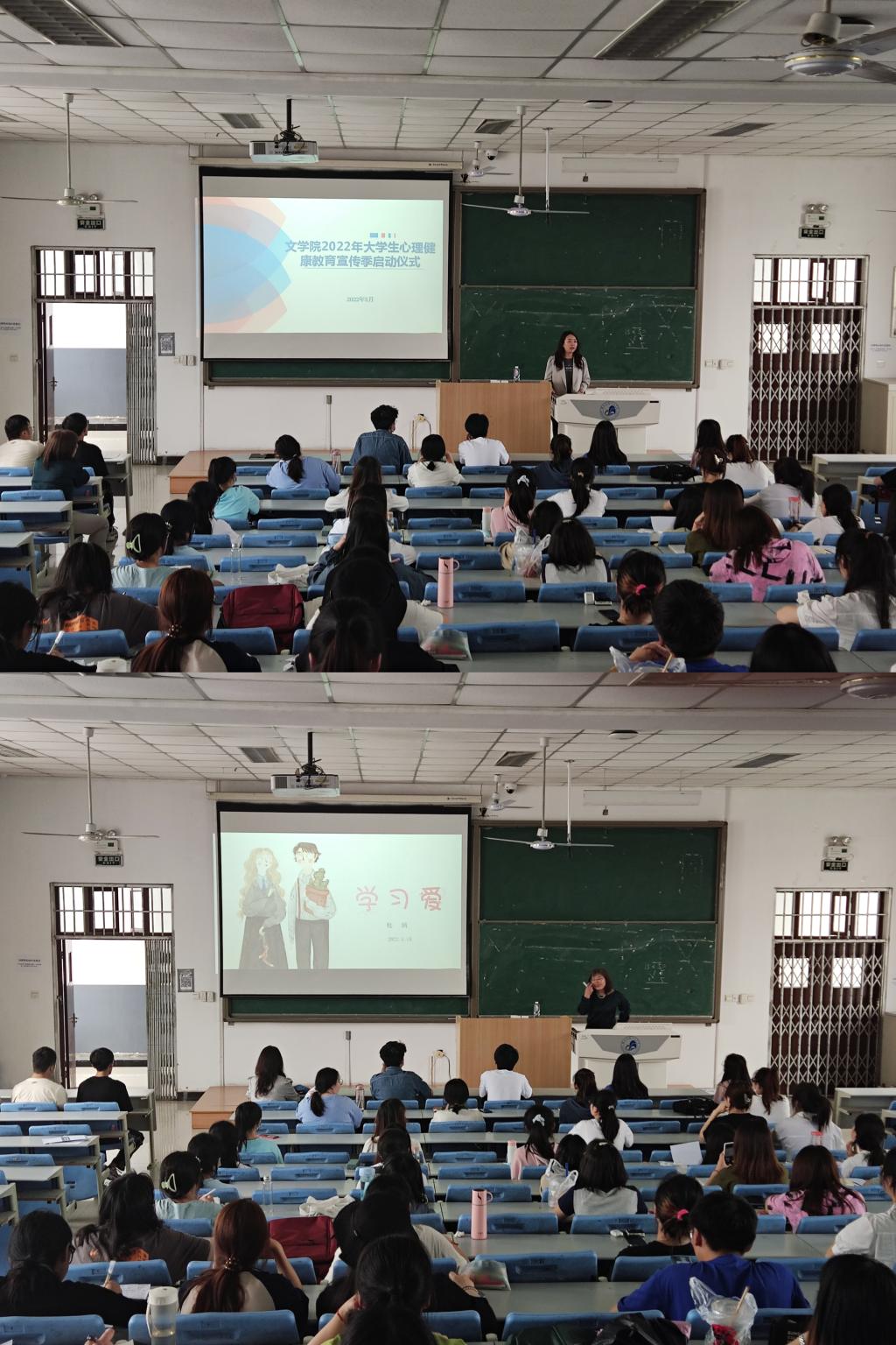 5月18日,文学院在博文楼C4教室举行2022年大学生心理健康教育活动宣传季启动仪式暨心理健康专题讲座。文学院党委副书记庞曦、全体辅导员、各班班长、心理委员和宿舍长代表参加了本次活动。活动由学院心理健康工作站副站长、辅导员李杨主持。