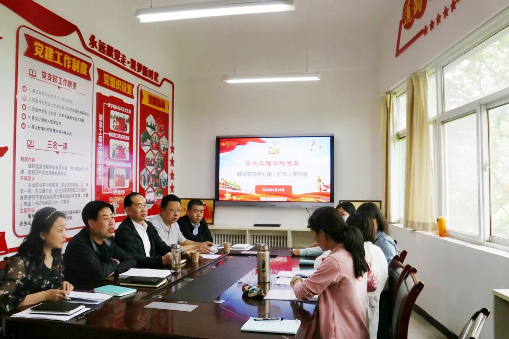 2022年5月18日下午,信息工程学院党委在积学楼A202党员工作室召开党委理论中心组(扩大)学习会。副校长文明、学院党委理论中心组成员、各支部书记参加会议。会议由院党委书记白建超同志主持。