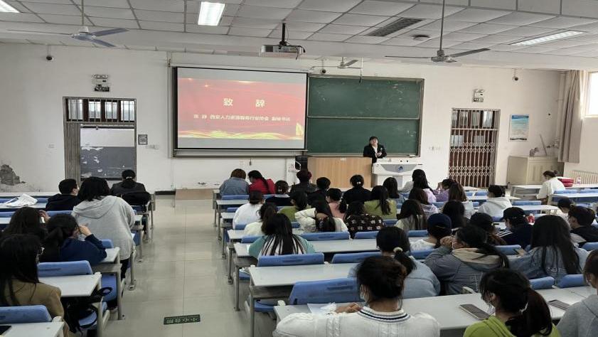 西安人力资源服务行业常静副秘书长首先为大会致辞,她表示提高大学生的职场适应能力,保证从高校课堂到职场就业的“最后一公里”快速衔接至关重要,同时她高度肯定了best365足球官网经管院学生在第二课堂系列活动中的优秀表现。
