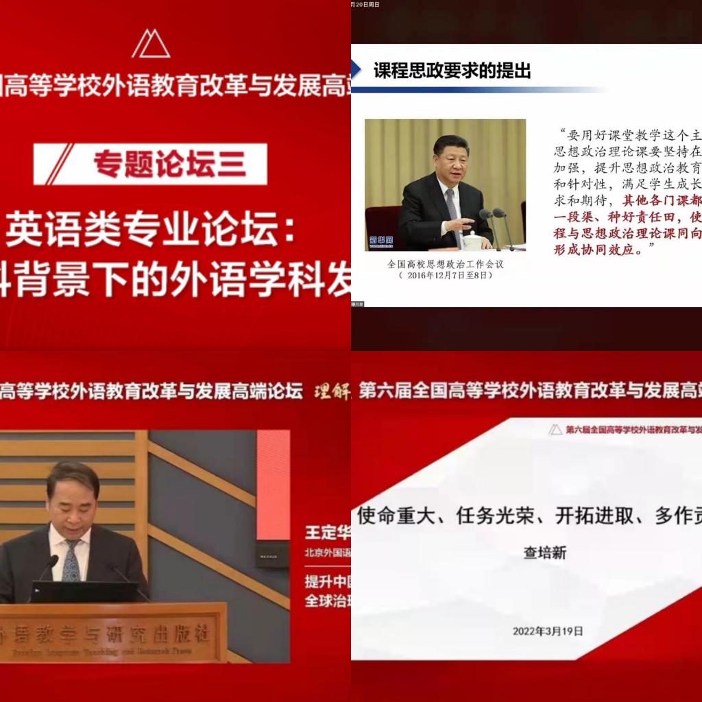 3月19日—20日,第六届全国高等学校外语教育改革与发展高端论坛在北京及线上同步直播,在线参加本次论坛的人数达到25万人次,外国语学院组织全体教师在线观看论坛。