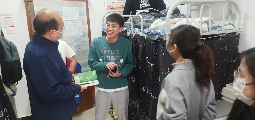 为全面做好封闭期间的学生管理服务工作,学院立足“平稳顺”的管理目标,本着“严细实”的工作态度,深入研判封闭管理期间学生工作的特殊性、复杂性,制定了《文学院封闭期间学生管理预案》,严格落实各项防控措施,加强对学生的宣传教育与防控管理,切实保障全体学生的健康安全。同时,强化对学生的思想引导、心理疏导和人文关怀,学院党委书记杨阳、副书记庞曦以及全体住校辅导员经常性深入学生宿舍,了解学生思想动态,查看宿舍卫生环境和防疫防控工作落实情况,叮嘱学生严格遵守学校封闭管理规定,安心学习生活,加强自我管理,养成良好的日常作息习惯,指导学生以健康乐观的心态和积极向上的精神面貌过好封闭期间的在校生活。