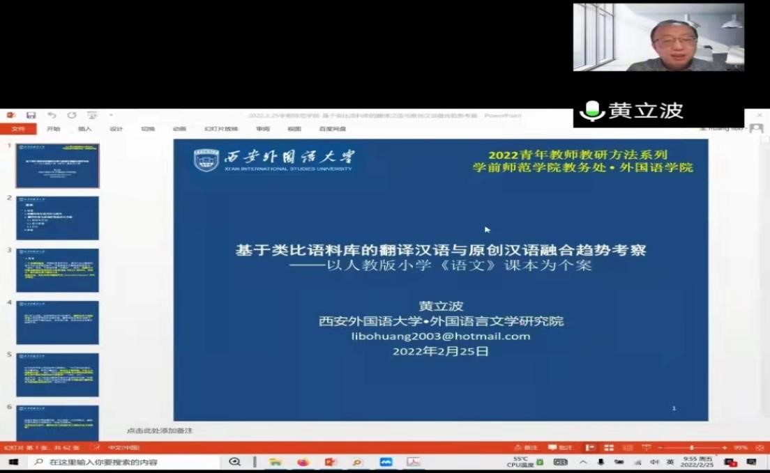 在2022年春季教学即将开始之际,为了提升best365官网青年外语教师的教研能力,教务处与外国语学院共同举办了青年教师研方法指导系列讲座,讲座于2月24-25日早上通过腾讯会议网络平台进行。来自西安交通大学、西北工业大学、西安外国语大学、西安文理学院的我省外语学界六名知名专家学者应邀作了精彩的报告,外国语学院全体教师及我省西安外国语大学、陕西师范大学、西安交通大学、西北政法大学等多所高校的教师参加了线上讲座。会议分别由院长张慧军教授、温宏社教授、副院长王雨和副院长张莉娟主持。