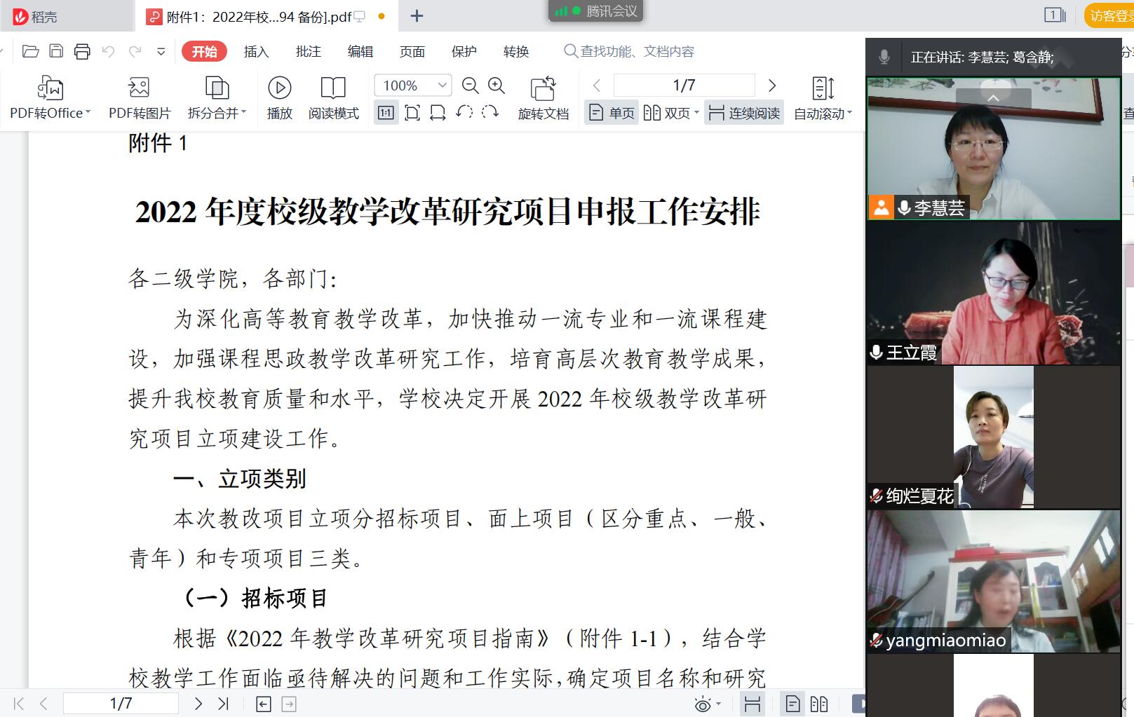 随后,生命科学系、食品科学与工程系和学前教育(营养与保健)系系主任,分别从本系往年教改项目立项情况、研究情况、课程建设和课程团队情况进行了阐述,并对本系的拟申报情况和统筹协调的情况做了汇报。