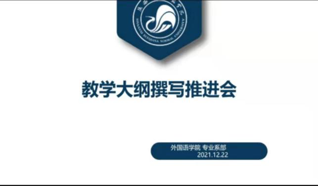 2021年12月22日下午,外国语学院专业系部在云端平台召开了英语专业、翻译专业课程“教学大纲编写”专题推进会,外国语学院张慧军院长、系部主任、专业系部全体教师参加了此次会议,会议由外国语学院副院长张莉娟主持。
