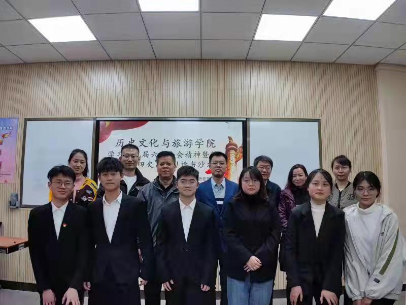 为深入学习十九届六中全会精神,贯彻落实习近平总书记关于学“四史”的重要指示精神,进一步学习领会中国共产党百年奋斗的重大成就和历史经验,教育广大师生做到知史爱党,知史爱国,从而坚定历史自觉,增强使命担当,11月24日下午,历史文化与旅游学院历史系党支部在1B203智慧教室开展了学习十九届六中全会精神暨第一期“四史精神”学习读书沙龙活动。学院党委书记童广运和历史系党支部全体党员老师以及历史学专业部分学生党员、积极分子参加读书分享活动。活动由历史系党支部书记韩小婷主持。
