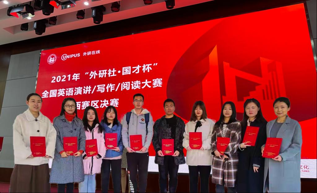 11月6日,2021年“外研社·国才杯”全国英语演讲、写作、阅读大赛陕西赛区决赛在西安工业大学落下帷幕。因新冠疫情防控需要,本次大赛以线上、线下相结合的方式进行,来自全省52所高校的三百多名选手进行了激烈的角逐,best365官网共选派了七名选手参加了比赛,取得了令人瞩目的成绩,共斩获一等奖一名、二等奖一名、三等奖五名,其中,外国语学院杨涛同学获得了阅读大赛一等奖,施瑾怡、刘佳获得写阅读大赛三等奖;徐玮同学获得写作大赛二等奖,穆佳林、韩婧获得写作大赛三等奖;郭凡获得演讲大赛三等奖。外国语学院牛蕊、李娟、王蓉老师分获指导教师一、二、三等奖。