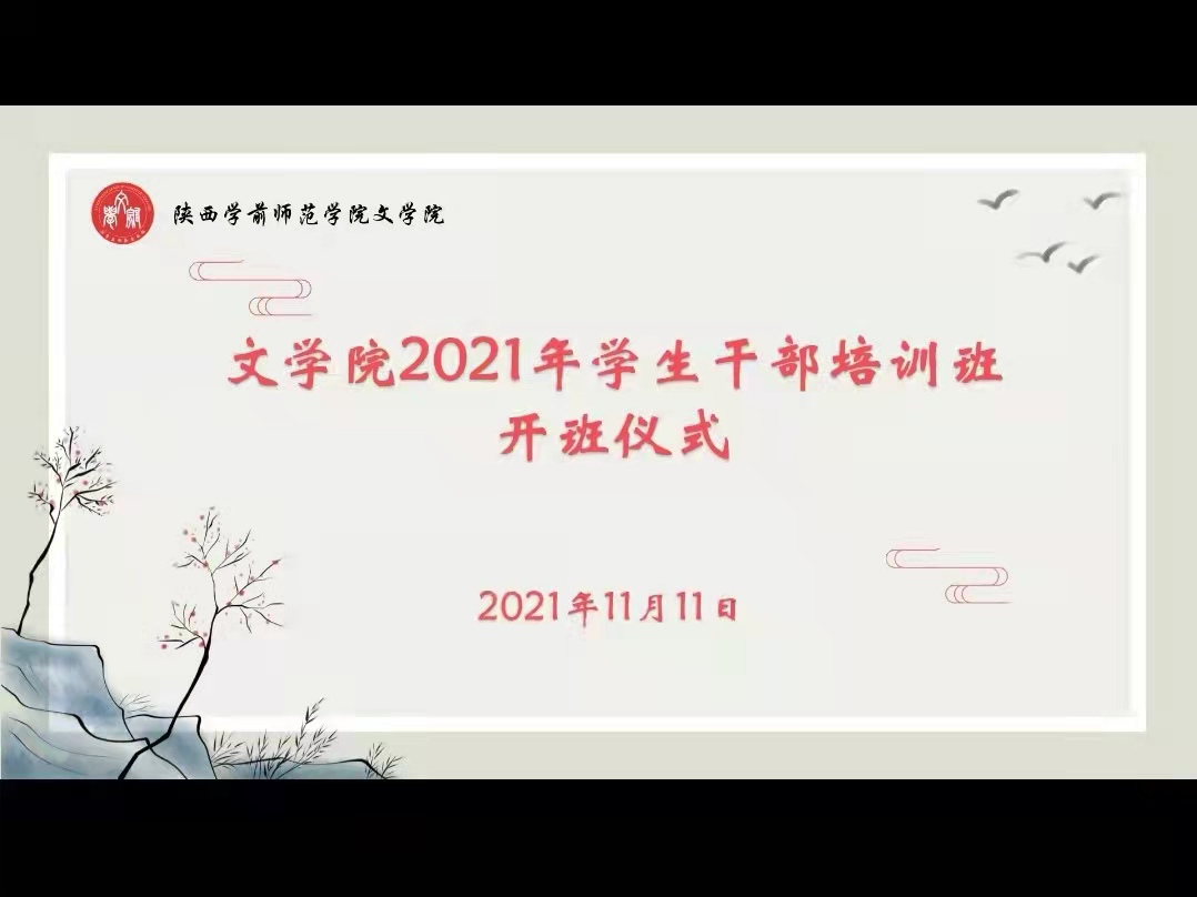 开班仪式上,李杨老师宣读了《文学院2021年度学生干部培训工作方案》,介绍了本次培训的目的、方式、要求和具体安排。庞曦副书记作了动员讲话,说明了本次培训的背景和意义,要求全体参训人员要提高认识、及时总结、深刻反思,加强与老师同学的沟通交流,将培训学习与工作实践相结合,推进学生工作取得长足进步。