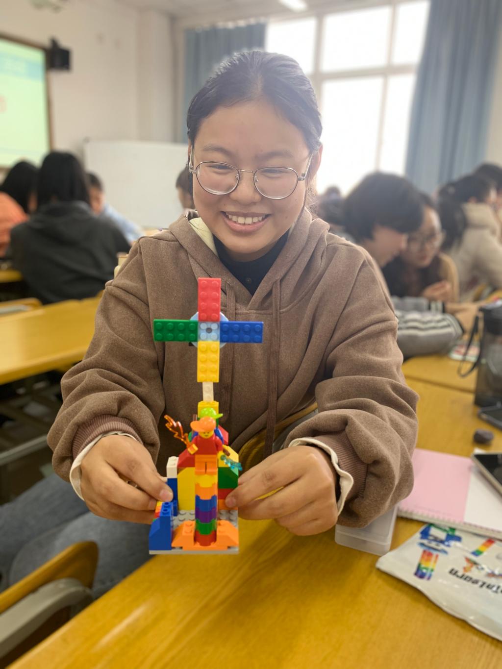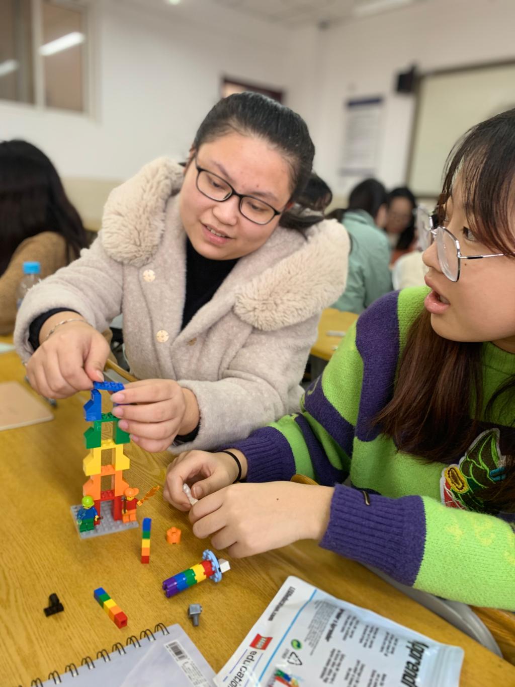 体验活动由best365足球官网“乐高创新人才培养基地”认证培训师刘炜、郑珂负责活动组织和实施,体验活动吸引了来自各专业共计50多名学生前来参加。在热身活动中借助LearnToLearn教具套装,引导参与学生完成“雷尼先生”的搭建,在创意主题“我和我的家乡”活动中,引导学生相互交流合作、动手搭建,并自主创意出“我的家乡”模型,在小组分享交流环节同学们展示了自己满意的作品并介绍自己的家乡,同时分享了体验活动的收获。乐高创新体验活动以学生为中心让他们在“寓学于乐”的过程中,了解乐高促进STEAM教育的方案与特色,充分体会并理解STEAM教育中各学科融合的课程理念。