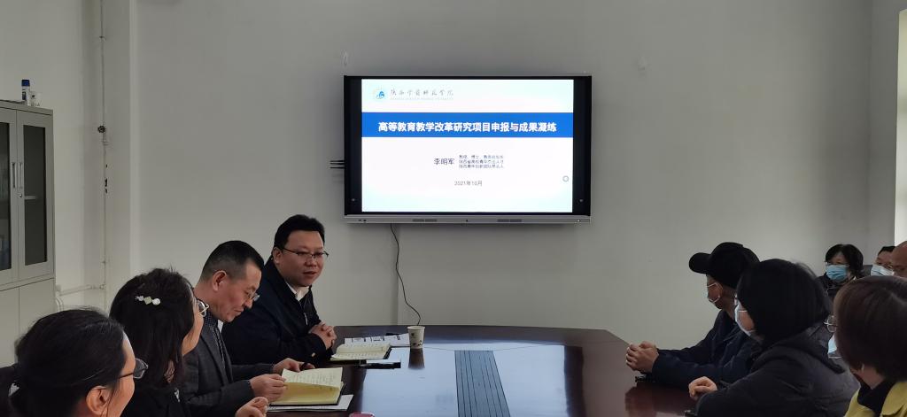 10月27日下午,陕西省高校青年杰出人才、best365官网教务处处长李明军教授应邀到我院作《高等教育教学改革研究项目申报与成果凝练》专题报告,我院全体教师参加,报告会由院长李宏飞教授主持。
