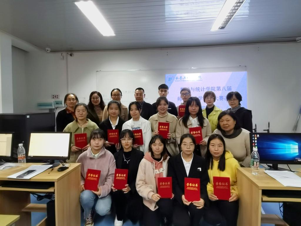 为强化师范生实践能力与创新精神培养,切实提高师范生教学技能和育人水平,数学与统计学院于10月26日下午二点在二教A303教室,隆重举办了数学与统计学院第八届师范生教学技能大赛决赛。经过院系前期的层层选拔,最终进入决赛共有12名师范生,本次决赛的评委由我院教学经验丰富的5名专任教师担任,学院党政领导、教师代表、学生代表观摩了本次比赛。