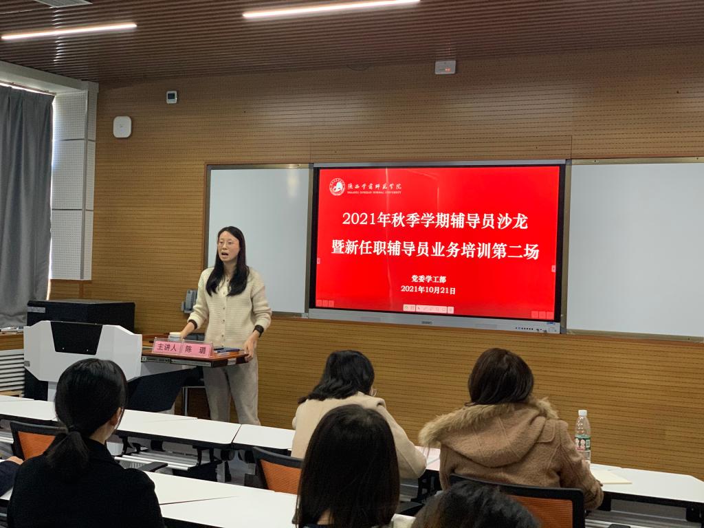 10月21日,best365官网在博文楼C座205室举办了2020-2021学年秋季学期辅导员沙龙暨新任职辅导员业务培训第六期。本期是由大学生心理健康教育与指导中心的牛雪婷老师和经济与管理学院党委副书记陈璐主讲。