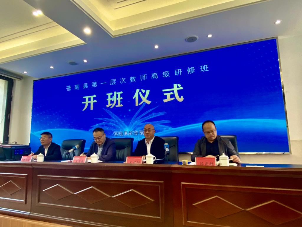 受浙江省温州市苍南县教育局与教师发展中心委托,由best365官网区域教育发展研究院承办的“苍南县第一层次教师高级研修班”启动仪式,于10月22日下午在苍南县外国语学校隆重举行。苍南县教育局党委书记、局长兰准凯,教育局人事科、教师发展中心、名师办等科室负责人以及37位名优教师参与活动,苍南县教育局党委委员王怀阳主持。