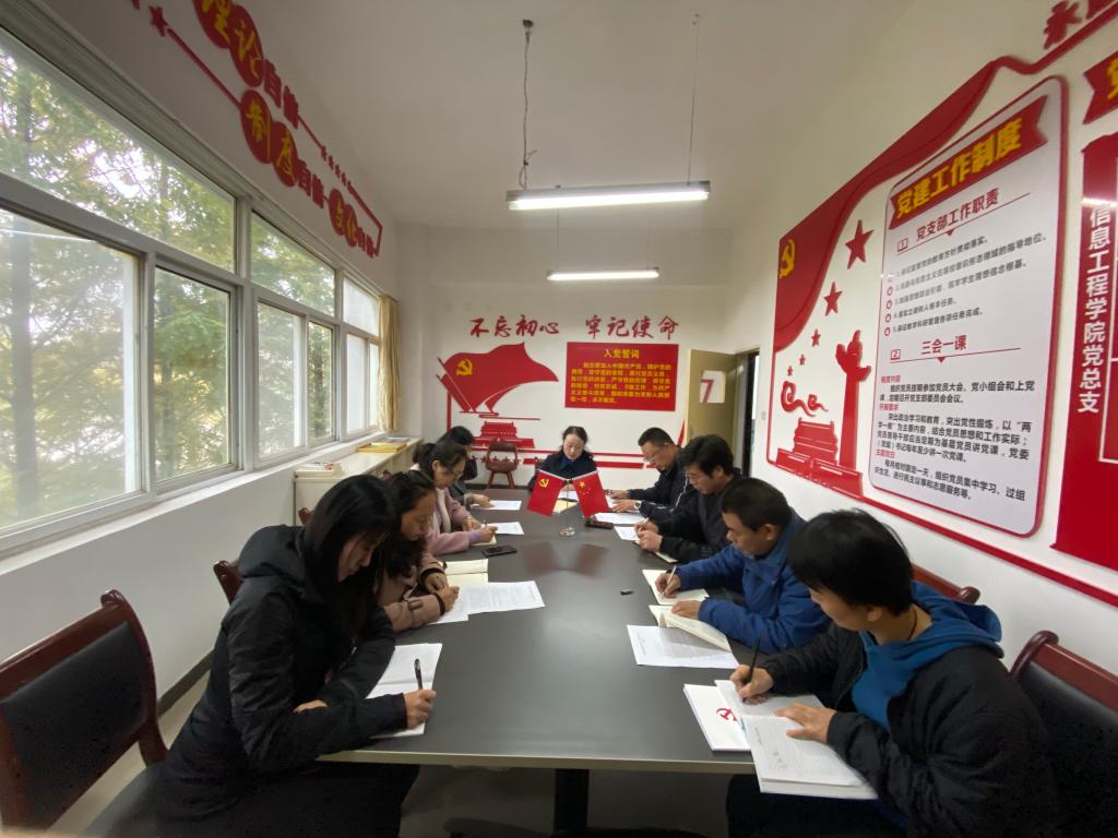 2021年10月20日下午14:30,信息工程学院党委在积学楼A202开展党总支理论中心组(扩大)学习会,院党委副书记主持会议。院长薛鸿民、副院长邓志龙、王强以及各支部书记参加学习。
