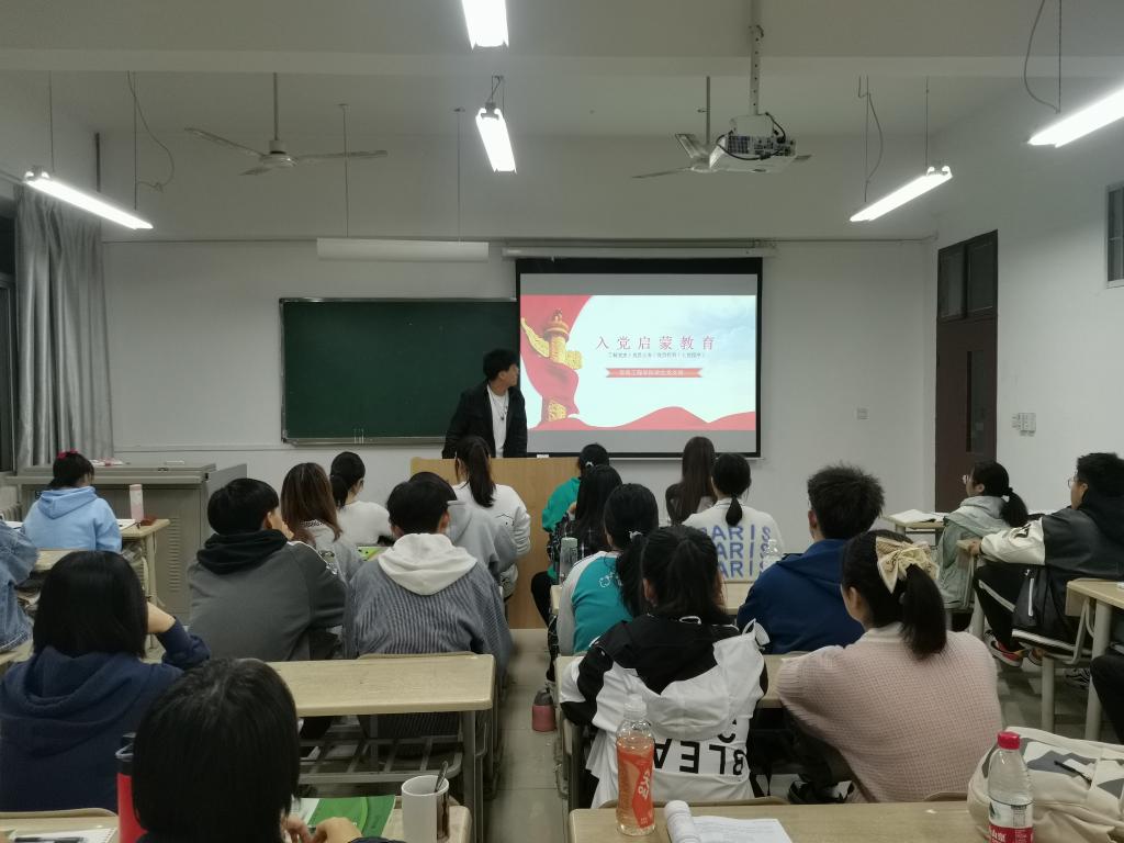 为了增进新生对党的认识,引导新生积极向党组织靠拢,提高思想觉悟,端正入党动机,激发广大新生爱党情怀,信息工程学院学生党支部选拔优秀党员先锋,在2021年10月12-13日,利用晚自习时间进班级对2021级新生开展了新生入党启蒙教育。