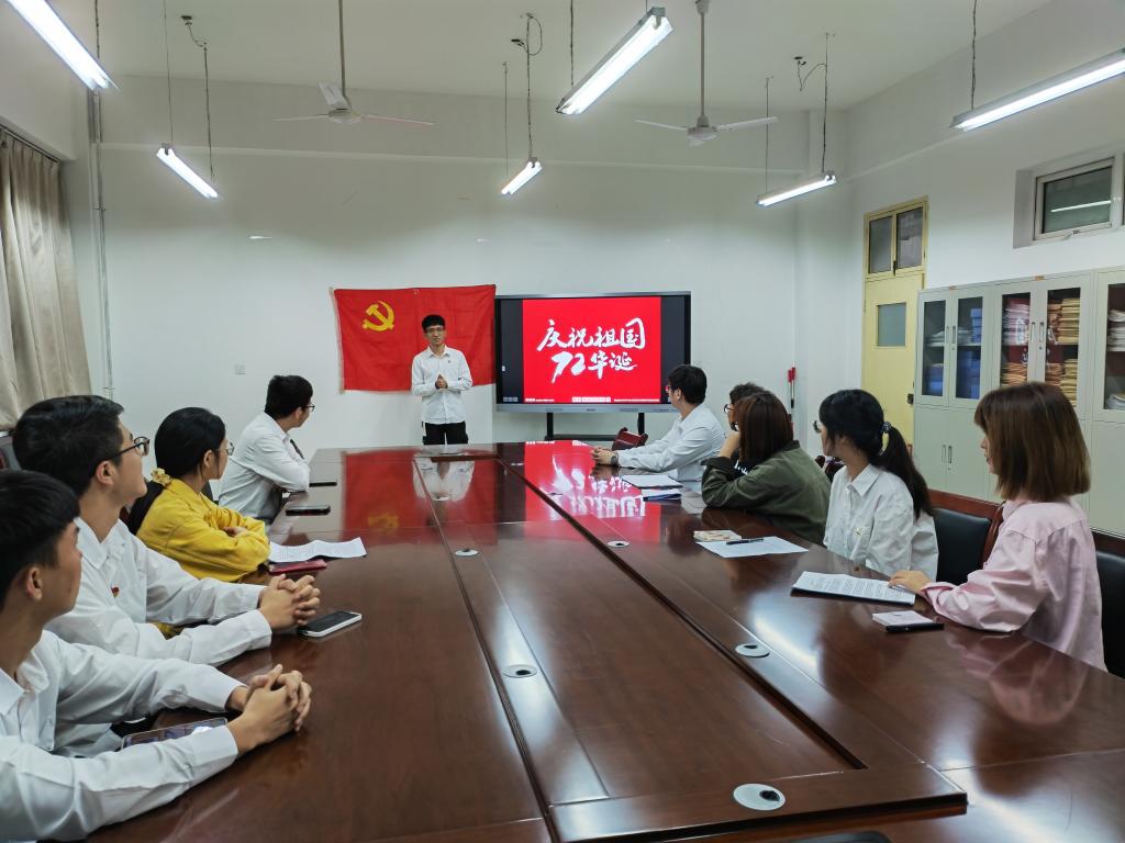 本次活动中,学生党支部的学生党员和积极分子分别通过照片和短视频展示自己印象中的国庆节,有的党员代表展示了令人记忆犹新的建国70周年大阅兵的精彩盛况,有的积极分子分享了令自己难忘的一次国庆节爱国主义教育经历,有的预备党员政治生日恰逢国庆,这些有画面感的小故事将活动推向了高潮。活动最后,同学们纷纷向祖国母亲送上了最诚挚的祝福。