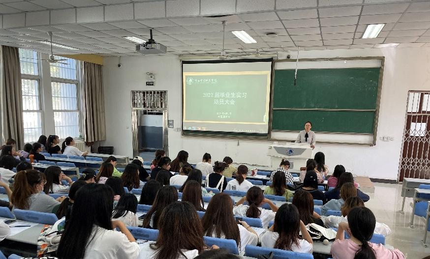 9月7日下午14时,外国语学院在博文楼C座阶梯教室举办了2022届全体毕业生教育实习行前动员大会。会议由张莉娟副院长主持,翻译系主任张琛睿老师、外语系教师代表高倩老师和毕业班辅导员陈燃老师共同参加了会议。