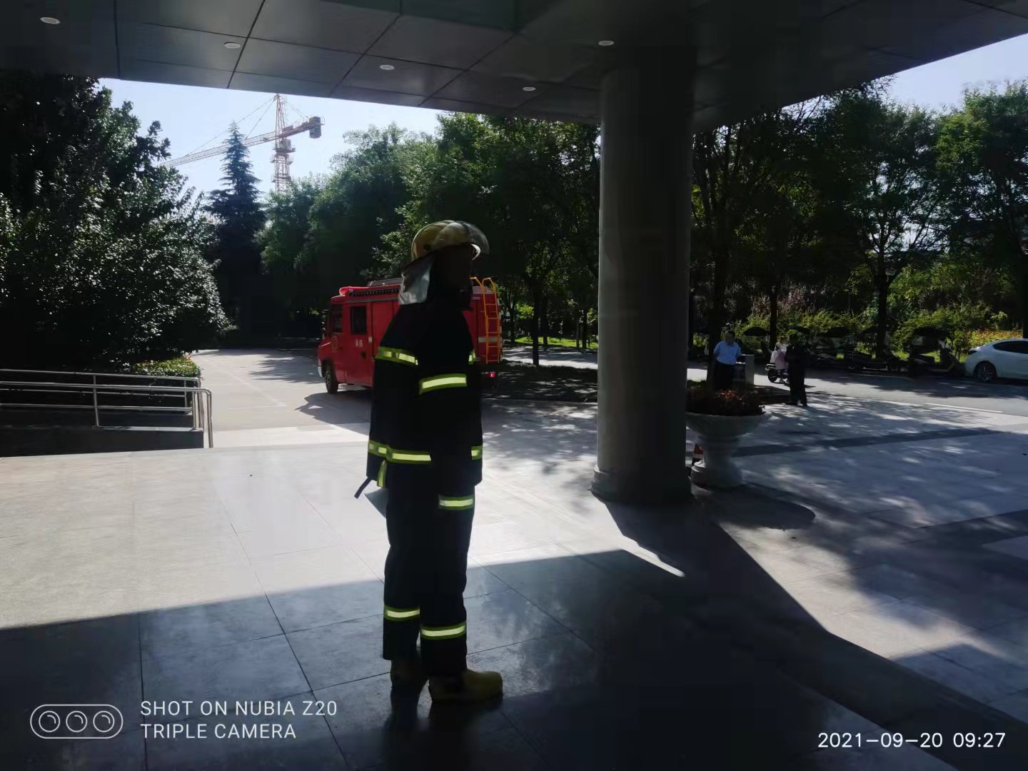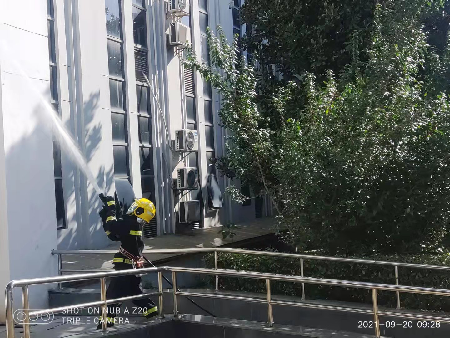 上午9:20德勤楼前,随着保卫处处长一声消防安全演练开始的命令发出,值班干部立即拨打119报警电话,校卫队员快速穿好灭火服,手持喇叭开始向楼里播放火灾报警,组织人员快速撤离。长安消防大队全副武装的消防员火速进入大楼,施放水枪压制火势,指挥人员疏散到安全地带,并积极实施救援。演练共用时2分零10秒,楼内的教职员工和学生全部安全疏散完毕,整个过程紧张有序、实用性强,达到了预期效果。