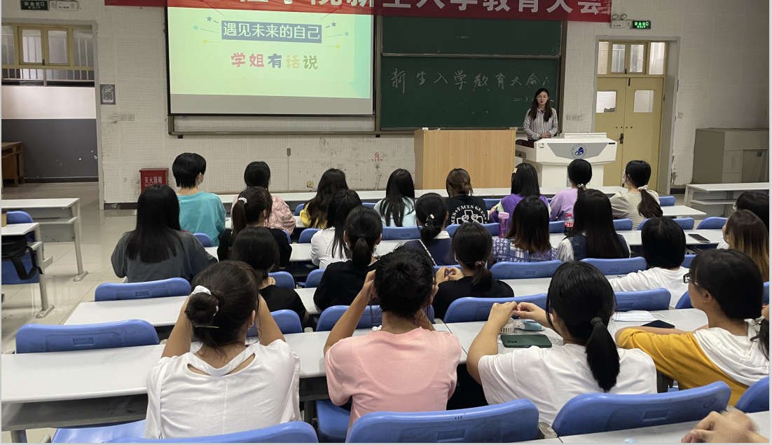 张若彤同学就入学规划、证书分类与考试、社会实践与竞赛、考研四方面讲述了自己大学四年的奋斗历程,分年级、分层次地引导新生进行适合自身发展的学业规划;贺学丽同学就具体的专业学习方法、竞赛、学生社团中的学生工作进行了细致介绍,与新生进行了互动和答疑,给他们指明了努力方向。
