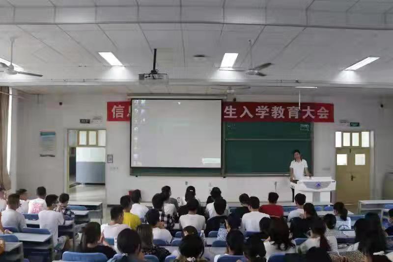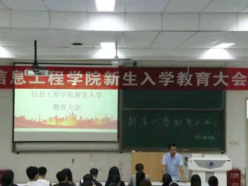 秋风送爽,丹桂飘香,信息工程学院迎来了232位新同学。他们满怀憧憬与期待,即将开启美好的大学新生活。为了让新生尽快地适应新环境,帮助他们了解专业方向,信息工程学院于9月15日举行了2021级新生入学教育大会。本次大会分为两个会场,数字媒体技术专业和数据科学与大数据技术专业新生在积学楼B1教室,由邓志龙副院长主持;物联网工程专业新生在积学楼B3教室,会议由王强副院长主持。学院党政领导、辅导员和各系教研室主任、任课教师和所有新生参加了此次会议。
