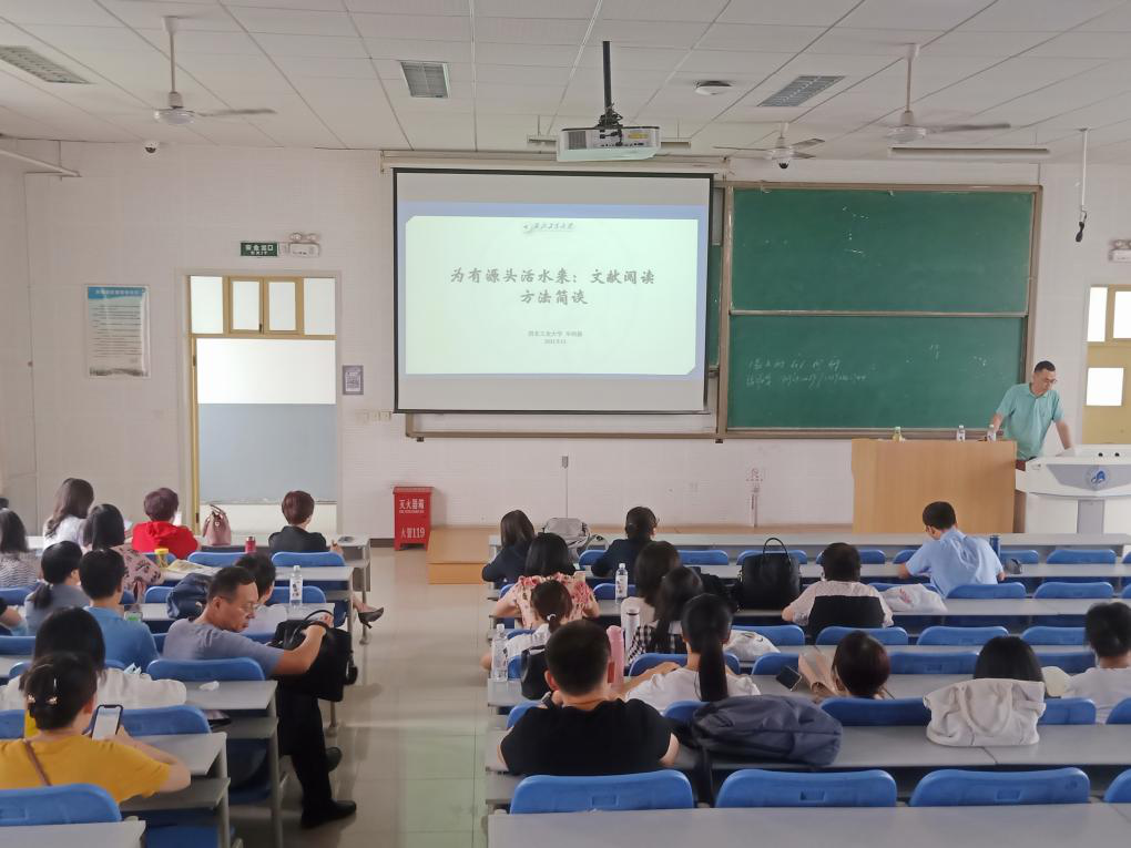 2021年9月15日下午四点,外国语学院举行了 “英华学术论坛”第31期学术讲座,西北工业大学助理教授、硕士生导师车向前博士应邀为我院全体教师做了题为《为有源头活水来:文献阅读方法简谈》的主题报告,外国语学院副院长王雨副教授主持了本次学术讲座。
