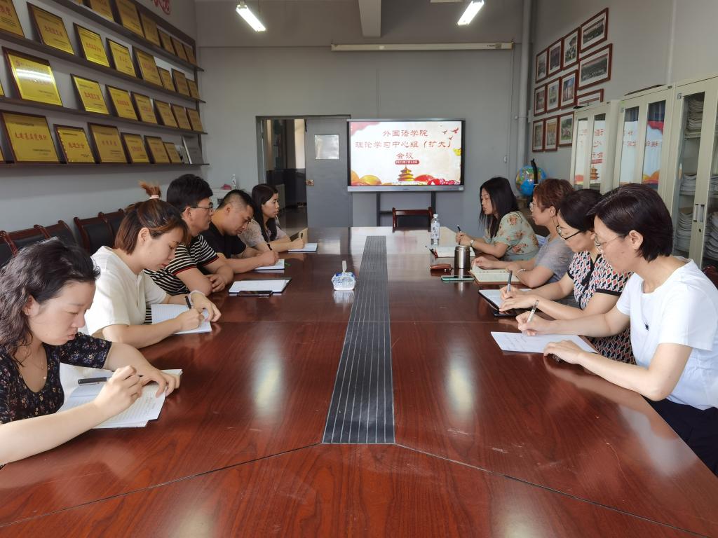 2021年7月12日上午,外国语学院党总支召集班子成员、总支委员、各支部书记召开理论学习中心组(扩大)会议,集中学习了习近平总书记在庆祝中国共产党成立100周年大会上的讲话。会议由总支副书记(主持工作)高海燕同志主持。