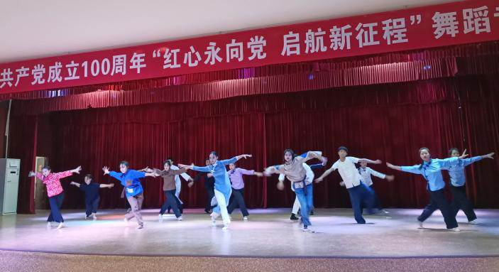音乐学院为庆祝中国共产党成立100周年,7月1日晚在大学生活动中心成功举办“红心永向党 启航新征程”舞蹈专场晚会,学校党委王凯副书记、权秋虎副书记,音乐学院党总支书记仵录让、音乐学院院长刘毅力、音乐学院副院长葛晓妮、音乐学院党总支副书记刘蓉辉及部分师生观看了本次演出。