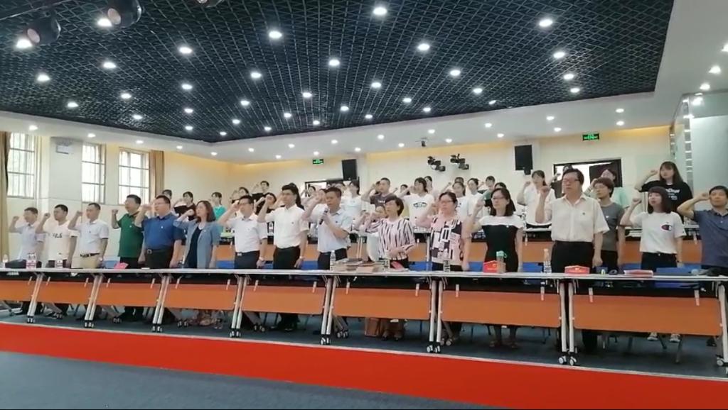 在全体党员通过集中观看大会实况,共同庆祝党的百年生日的同时,教务处、历史文化与旅游学院还为上半年入党的党员教师和学生发放了政治生日贺卡,在这光荣而难忘的时刻以独特的方式为他们庆贺政治生日。随后,全体党员面对党旗,举起右拳,庄严宣誓,重温入党誓词。大家一致表示,将牢记党的初心使命,弘扬光荣传统、赓续红色血脉,永远把伟大的建党精神继承下去、发扬光大,用实际行动推动复评整改和各项工作不断取得新突破,实现新作为。