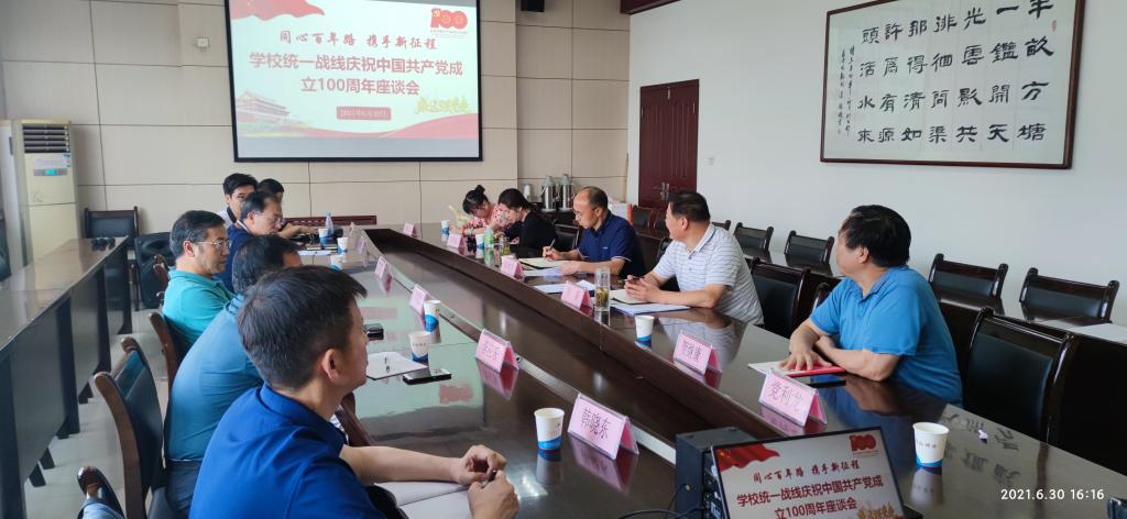 为庆祝中国共产党成立100周年,6月30日下午,best365足球官网统一战线庆祝中国共产党成立100周年座谈会在长安校区德勤楼第一会议室举行,党委副书记权秋虎出席会议,学院民主党派、无党派人士代表参加了会议。会议由统战部常务副部长肖新主持。