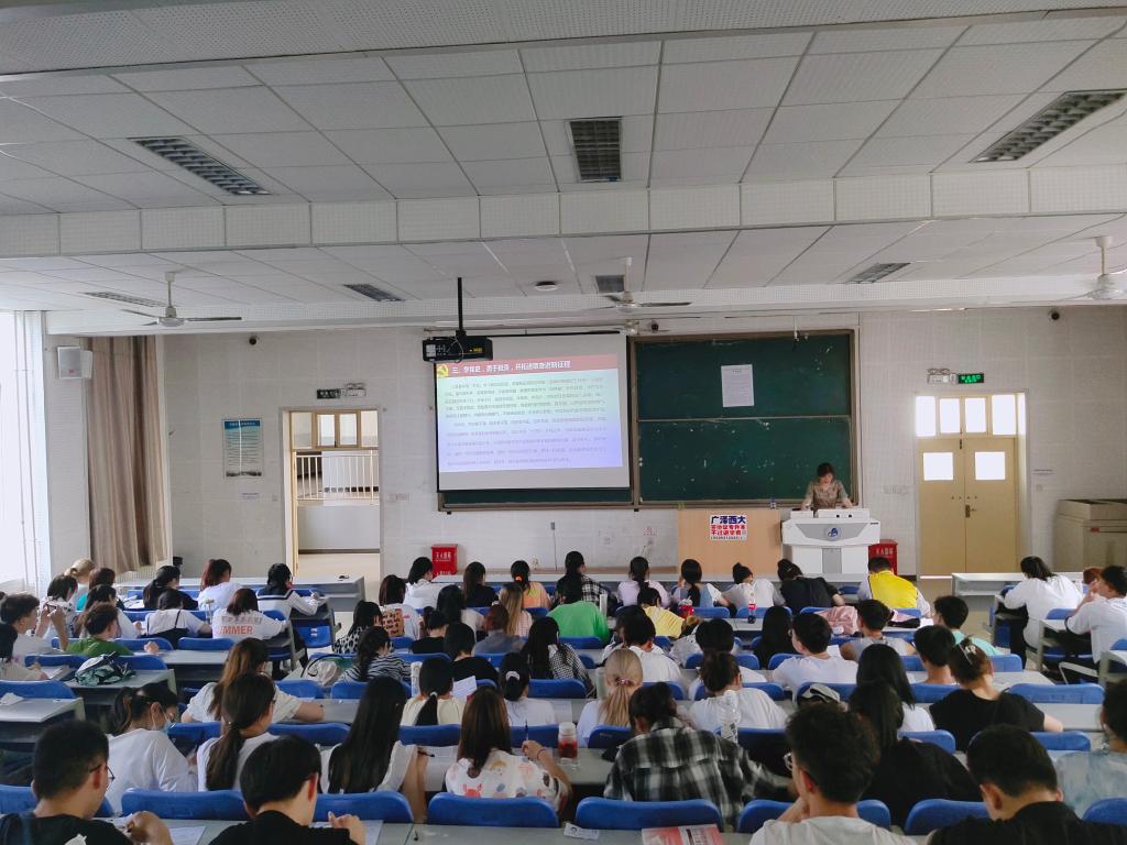 在我们党迎来百年华诞之际,在全面建设社会主义现代化国家新征程开启之时,我院为更好的引导广大青年按照习近平总书记指明的道路茁壮成长,努力成为堪当民族复兴重任的时代新人。2021年6月1日,生科院在积学楼B2阶梯教室开展以“学党史,勇担当,创新途,做时代有为青年”为主题的学习讲座。生科院党总支副书记郑美霞担任主讲人,19级生科、食品专业同学参与了此次讲座。