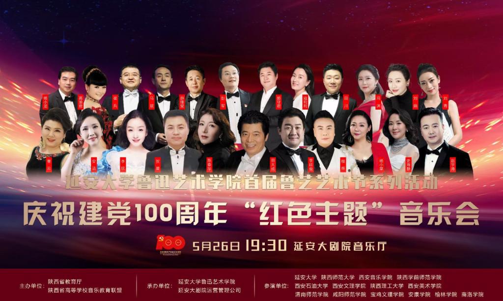 5月26日,由陕西省教育厅主办,陕西省高等学校音乐教育联盟、延安大学承办的庆祝建党100周年“红色主题”专场音乐会在延安市延安大剧院隆重圆满举办,来自省内14所高等院校的音乐专业教师参加了本场音乐会。best365官网音乐学院陈春华教授和杨小棠副教授参加本场音乐会。