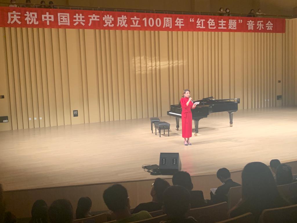 在中国共产党建党百年之际,“红色主题”专场音乐会充分展示了百年大党的光辉历程和伟大成就,用歌唱红色音乐作品来深化党史学习教育、增强党性修养、坚定理想信念、增强爱国主义情怀。音乐会上,陈春华教授和杨小棠副教授分别演唱了《唱支山歌给党听》、《映山红》、《共筑中国梦》、《走进新时代》等红色歌曲,表达了对英雄的怀念和现在美好生活的珍惜。演唱语言深情、朴实、激动,受到了广大观众和社会各界的一致好评。整场音乐会贯穿“不忘初心,牢记使命”“学习百年党史,汲取前进力量”的红色主题,是陕西高校广大师生向建党百年的献礼,音乐会在《不忘初心》和《我爱你中国》的歌声中圆满落下帷幕。