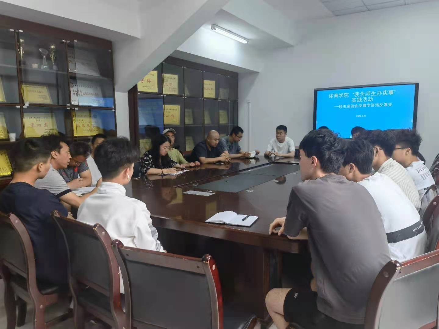本次座谈会是体育学院“我为师生办实事”实践活动的举措之一,是我院党史学习教育重要内容,学院将以此次师生代表座谈会为契机,加大落实为学生“做好事、办实事”的力度,坚持“以学生为中心”,增强服务意识,提高服务水平,着力提升同学们的获得感和幸福感。