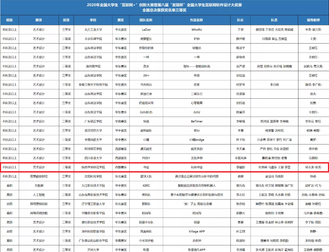 近日,全国大学生“互联网+”创新大赛暨第八届“发现杯”全国大学生互联网软件设计大奖赛落下帷幕。best365官网信息工程学院学生李耀彤、杜思雨、马鑫东、王颖、李莹团队设计的《何地寻迹》(指导教师:邓志龙、张秀)在学院领导的大力支持,教师的悉心指导下,经过激烈比拼,以西部赛区一等奖的好成绩进入全国总决赛,最终获得全国总决赛三等奖,同时在147组参赛作品中获得唯一的最具人气奖。