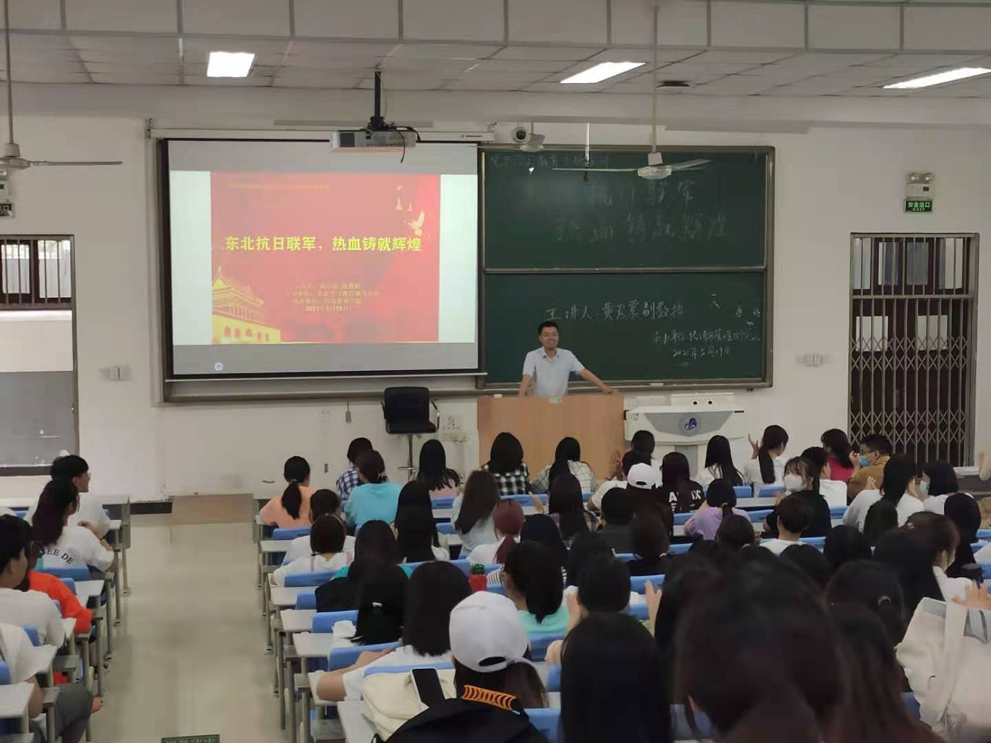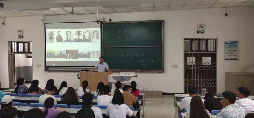 黄彦震老师以《东北抗日联军,热血铸就辉煌》为题,从东北抗联斗争的社会背景、东北抗联斗争的艰难历程以及东北抗联精神的科学内涵等三个方面入手,为与会同学详细介绍了东北抗日联军的发展历程、行政建制以及主要战役,以详实的史料生动讲述了以杨靖宇、赵尚志、周保中、冯仲云、李兆麟、赵一曼等为代表的中国共产党人为抗战英勇奋斗的光辉事迹。并指出,东北抗联精神的内涵是救亡图存、忠贞报国的爱国主义精神;是坚定执着、矢志不渝的共产主义信念;是前赴后继、视死如归的革命英雄主义精神;是克服困难、百折不挠的艰苦奋斗精神;是首创首行、独立自主的开拓创新精神;是休戚与共、团结奋斗的国际主义精神。