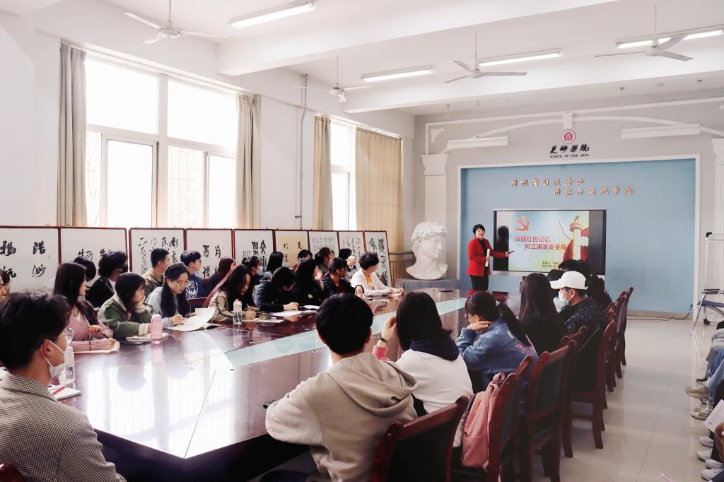 2021年4月14日中午12:15美术学院组织开展国家安全教育讲座,本次讲座的题目是“唤醒红色记忆,树立国家安全观”。由美术学院党总支副书记于跃老师主讲。