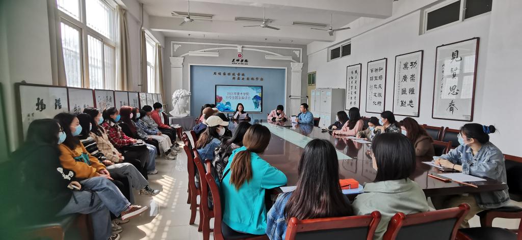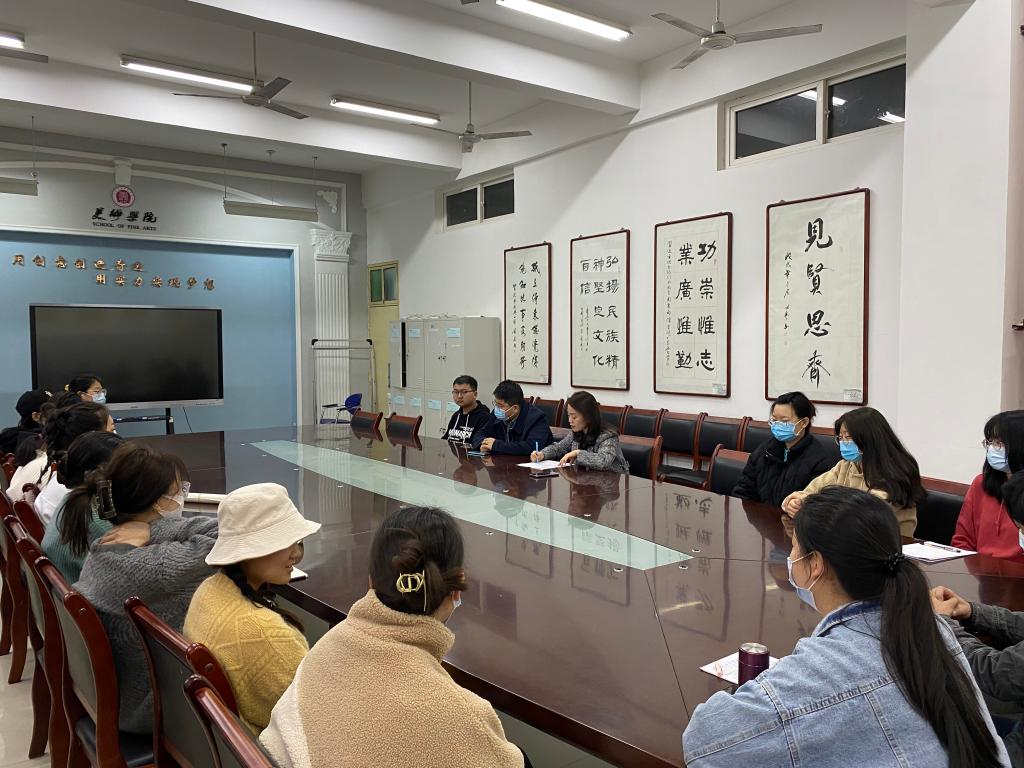 为进一步了解美术学院2021届未就业毕业生情况,并针对性地给予引导、帮扶,美术学院召开分专业未就业毕业生座谈会。4月2日、4月8日,美术学院在启真楼美术学院会议室召开了2021届绘画专业和美术学专业未就业毕业生就业工作座谈会。美术学院党总支副书记(主持工作)文竹主持会议,党总支副书记于跃、辅导员王春乐、孔令通及2021届绘画和美术学专业未就业学生参加座谈会。