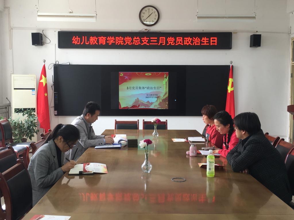 为进一步增强党员的凝聚力和归属感,唤醒党员的入党初心,2021年3月29日幼儿教育学院党总支在启真楼307会议室开展主题党日活动,为1月份和3月份入党的同志们集体过“政治生日”。