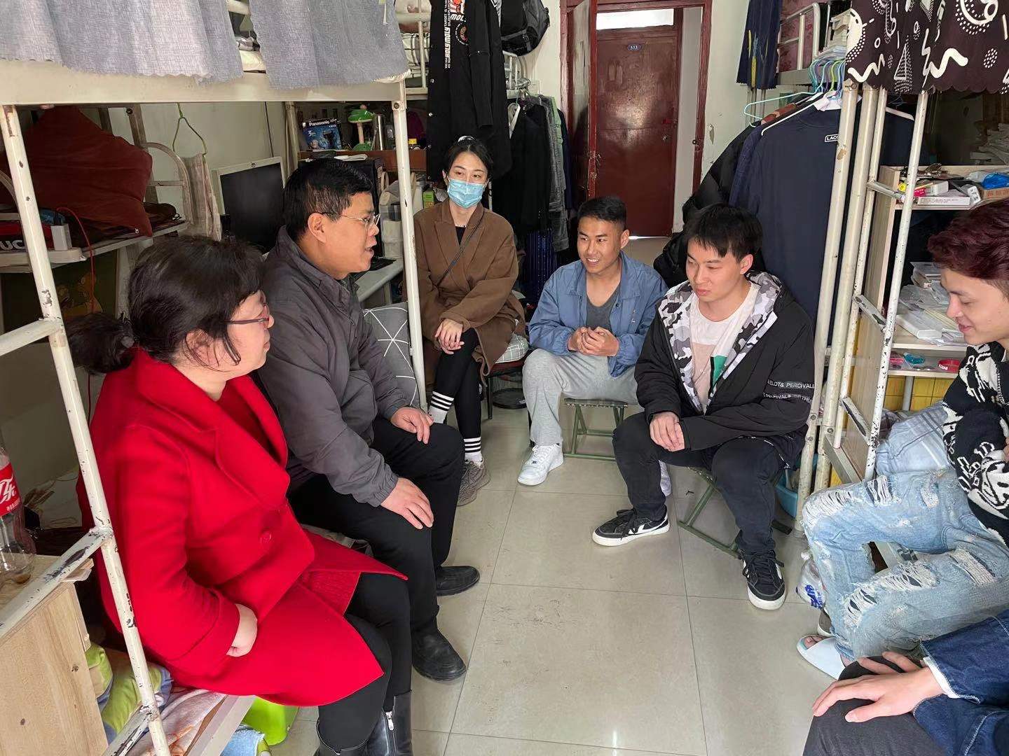 阳春三月,万象更新,best365官网迎来了2021年春季学期学生返校的时刻。为做好新学期学生返校工作,学院领导班子高度重视,3月1日召开会议研究部署学生返校的教学安排及各项准备工作。根据学校新学期学生返校方案和疫情防控要求,我院722名学生于3月2日、3日两天陆续返校,顺利完成来校报到工作。为了进一步了解学生新学期的生活学习状态,关心学生返校后的思想动态和心理状况,切实关心帮助学生学习、生活上的困难,同时加强疫情防控期间学生的安全稳定管理,3月3日下午,历史文化与旅游学院党总支书记童广运、副书记景艳、学工办主任王黎以及各级辅导员一行深入走访宿舍看望返校学生。