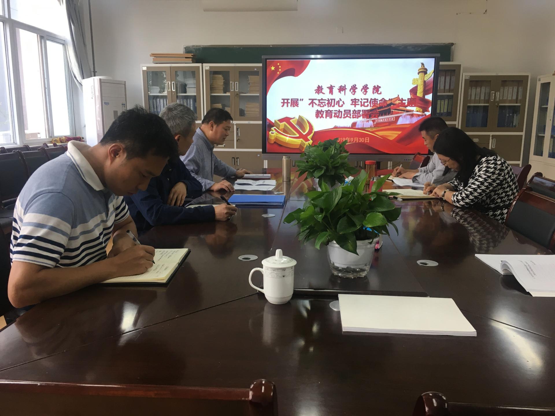 本次主题教育的对象是全体党员,重点是党员领导干部,要求班子成员思想统一、学深悟透、融会贯通、真信笃行、推进工作,并且要求支部书记积极发挥带动作用,以党支部为单位,结合“两学一做”学习教育常态化制度化,依托“三会一课”、主题党日等,推进主题教育,充分发挥支部战斗堡垒作用。尤其强调开展主题教育过程中,要力戒形式主义,坚决杜绝口号喊得震天响、行动起来轻飘飘不良作风,坚持统筹兼顾,把主题教育与庆祝新中国成立70周年结合起来、与迎评冲刺结合起来、与打造工作亮点特色结合起来,做到“两手抓、两促进”,将教育成效转化为攻坚克难的动力和干事创力的活力,推动学院各项工作稳步前进,为学校顺利通过合格评估做出最大贡献。