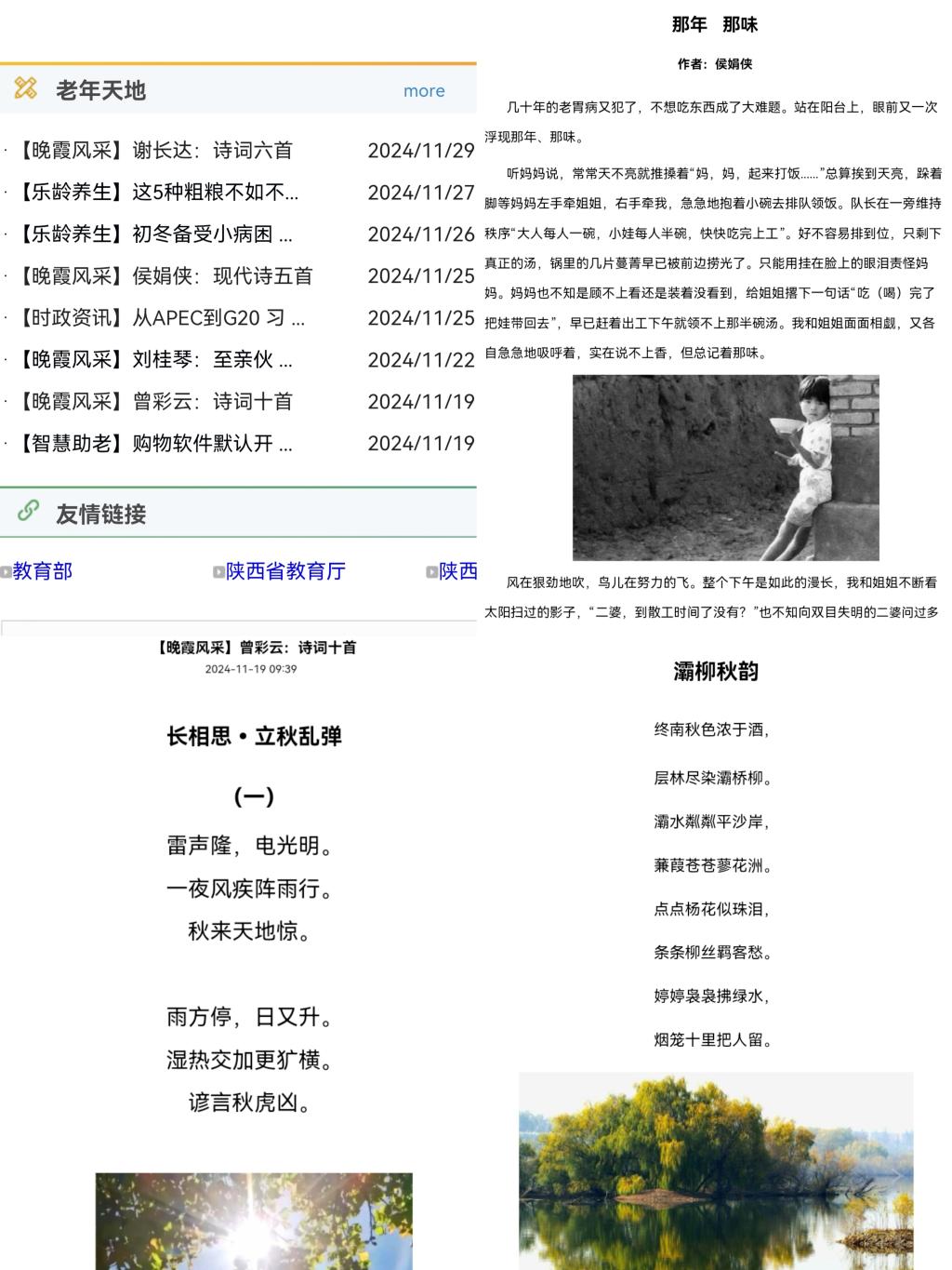 自今年十月份以来,为更好地服务离退休老同志退休生活需求,丰富离退休老同志的精神文化活动,展现best365官网离退休老同志“老有所学、老有所乐、老有所为”的精神风貌,为老年群体搭建一个可以学习知识、展示才艺、交流心声的平台,增强老年群体的归属感和幸福感,离退休工作处对“老年天地”专栏进行了改版设计,先后增设了【晚霞风采】、【智慧助老】、【乐龄养生】、【时政资讯】等版块,努力为离退休老同志提供多样化的网络学习需求。与此同时,重点针对“晚霞风采”进行推介,动员鼓励老同志们将记录退休生活的见闻感受、生活体验及书法绘画摄影作品等,以文字或图片的形式向离退休工作处网页“老年天地”专栏投稿。征稿活动开展以来,极大地激发了老同志们的创作热情,受到老同志们的普遍关注和积极响应。截止目前,征稿先后收到散文、诗词、书法、摄影、随笔等投稿100余件,经离退休工作处审核编辑后,已在部门网页“老年天地”专栏【晚霞风采】陆续发布11期,供全校师生浏览欣赏。