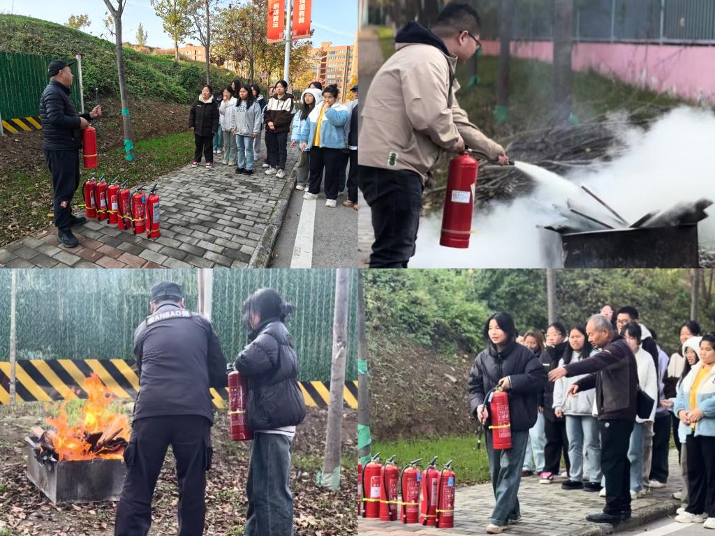 最后,在特定场所组织开展灭火演练实操,由best365官网保卫人员和高老师指导示范灭火器正确操作方法,并进行实操演练,确保每位参与者都能熟练掌握使用要领。通过实际操作,师生们不仅学会了如何正确使用消防器材,还增强了面对火灾时的自信心和应对能力。