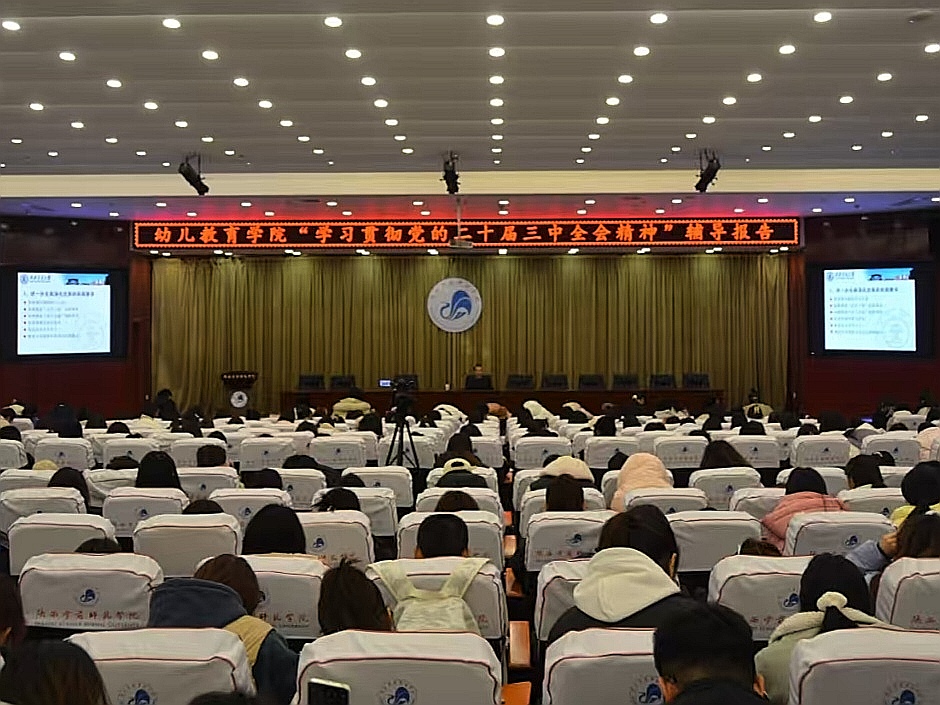为深入学习贯彻党的二十届三中全会精神,把握党的二十届三中全会精神的丰富内涵、精髓要义和实践要求,鼓足干事创业的精气神,2024年12月5日,幼儿教育学院邀请西安交通大学马克思主义学院副院长陈建兵教授在图书馆学术报告厅为幼儿教育学院党员师生作主题为“学习贯彻党的二十届三中全会精神”的辅导报告。幼儿教育学院班子成员、马克思主义学院教师代表、幼儿教育学院师生党员代表及第六期发展对象、第五期入党积极分子等二百余人参加了报告会,会议由幼儿教育学院党委副书记王继康主持。