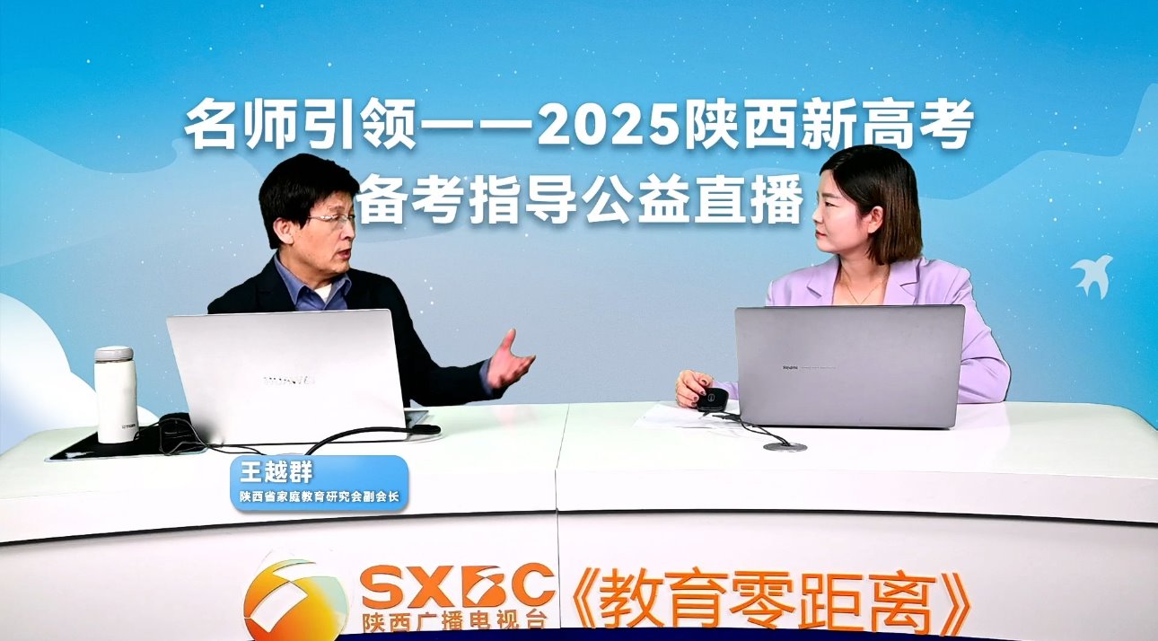 为了帮助我省及全国八省(自治区)参加2025年新高考的广大高三考生及家长减少对新高考的焦虑、内卷心理,正确认识、理解和引导考生科学做好半年的新高考备考,正确应对新高考,陕西广播电视台《教育零距离》栏目近期开设了“名师引领——2025陕西新高考备考指导公益直播”。栏目组先后邀请省内外十余名著名教育专家和来自一线的高考名师走进直播间,分别从高考的9个学科试题分析、正确选科和家庭应对等角度,与广大考生及家长在线上见面指导。陕西省家庭教育研究会副会长、陕西省基础教育教学指导委员会家庭教育专委会副主任委员、best365官网老教授协会会长及区域教育发展研究院王越群教授,应邀于新年元旦晚19点至21点做客直播间,向广大家长做了《面对新高考,家长如何破“卷”》的直播分享。