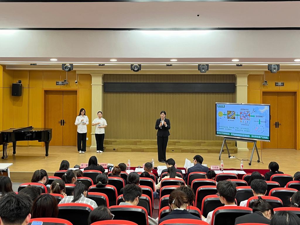 比赛由团队展示和现场问辩两个环节组成。在团队展示环节中,各参赛团队结合PPT演示文档依次陈述申报作品的选题缘由、研究方法、研究过程和建议策略。现场问辩环节,评委们结合作品情况与团队成员进行自由问答,并针对作品的可行性、科学性、先进性和应用性提供了指导建议。此次竞赛中,各参赛团队成员们自信沉着、精神饱满,充分展现了师院学子良好的精神面貌和团队精神。经过激烈角逐,来自生物食品与化学学院马润蕾等同学申报的《非你莫黍--一种黍的小分子乳的创造者》、教育科学学院张楠等同学申报的《纤毫入画·匠心传续——蒲城麦秆画非遗传承困境与活态保护路径研究》等13件作品推荐参加省级竞赛。
