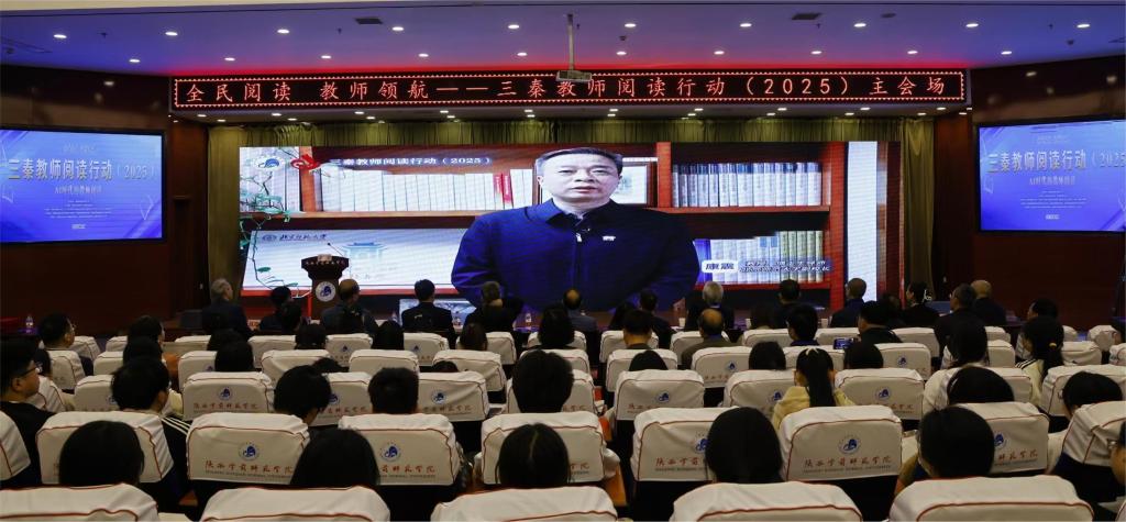 4月12日,以“AI时代的教师阅读”为主题的三秦教师阅读行动(2025)活动在best365官网图书馆报告厅拉开帷幕。本次活动由best365官网与陕西教育报刊社主办,best365官网人文学院、党委学工部、学科建设与科研处、教育培训学院、图书馆承办,陕西省中小学幼儿园教师发展中心协办,中国高等教育学会语文教育专业委员会、陕西省教育科学研究院、陕西省基础教育语文教学指导委员会提供学术指导。相关领域专家学者、基础教育一线教师、高校师范生代表及线上观众近20万人参加活动。